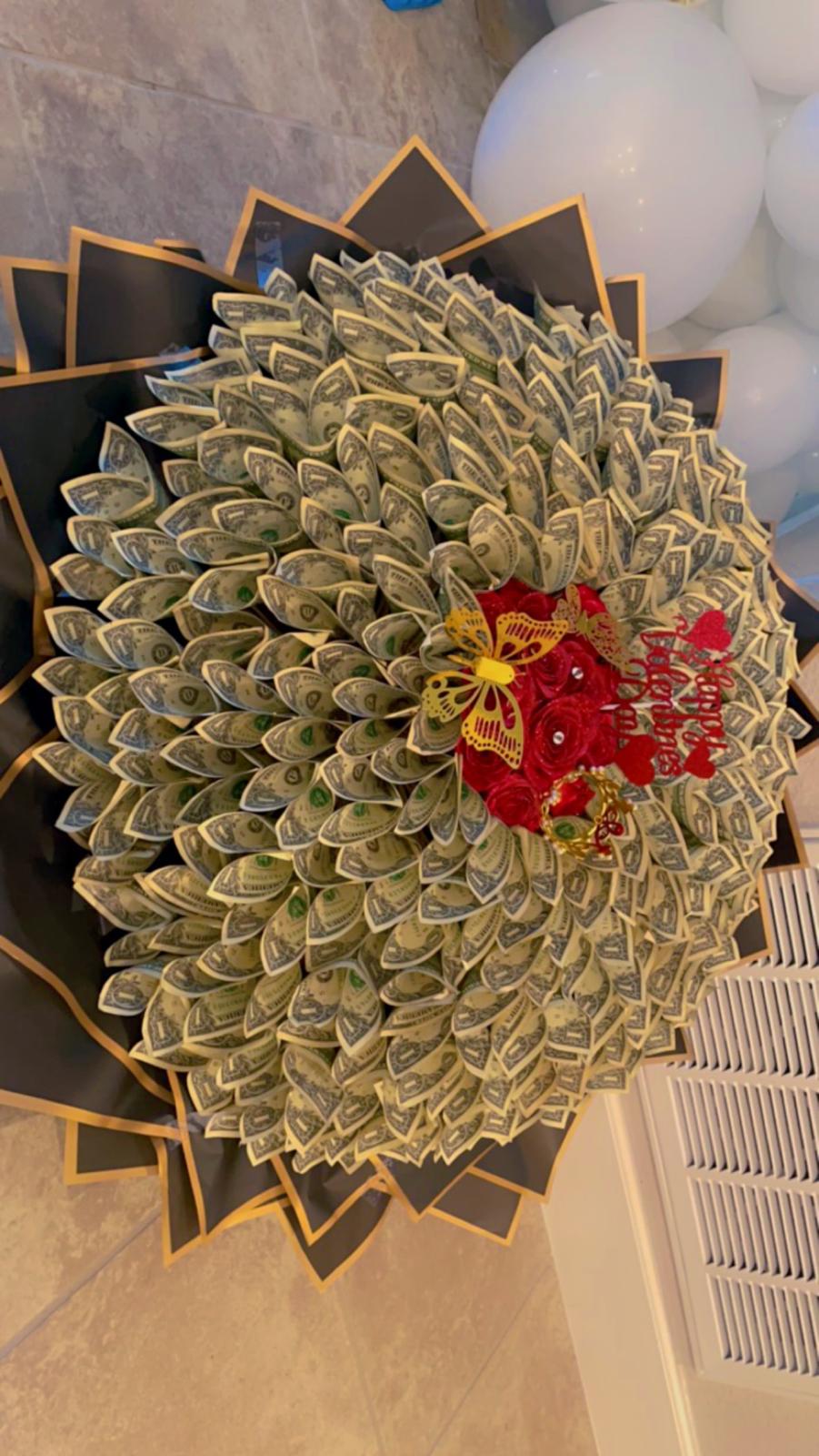 Discover our magnificent Money Bouquet, an original and elegant gift that will delight your loved ones! Composed of carefully folded and artistically arranged bills of various denominations, this bouquet adds a touch of surprise and refinement to all special occasions. Give the gift of money with style and make the eyes of those you love sparkle with our one-of-a-kind Money Bouquet.
